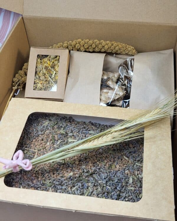 Sustrato: Granulado de huesillo, hoja de olivo esterilizada, flores de lavanda.