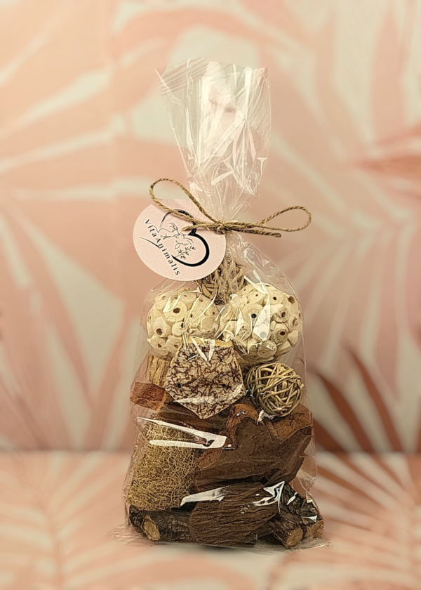 En VitaAnimalis nos apasiona ofrecer productos naturales y artesanales de la más alta calidad para enriquecer la vida de los loros. Cada pieza que creamos pasa por un cuidadoso proceso de selección, limpieza y desinfección, garantizando la seguridad y el bienestar de tu ave.