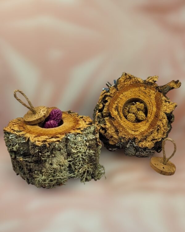 Los Comederos Interactivos de VitaAnimalis están diseñados para ofrecer a tus loros un reto divertido y saludable a la hora de conseguir su comida. Fabricados de forma artesanal con alcornoque natural, cada modelo presenta hondonadas y formas con distintos niveles de dificultad, fomentando el instinto de búsqueda y manteniendo a tu ave activa y entretenida.