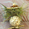 Eira está pensado para ofrecer una experiencia de exploración completa a través de materiales vegetales muy atractivos para el loro. Su composición reúne dos estrellas de ratán de 12 cm, dos estrellas de coco, una bola de ratán rellena de heno de montaña y una bola de yuca de 8 cm, todo ello ensamblado con cuerda de yute.