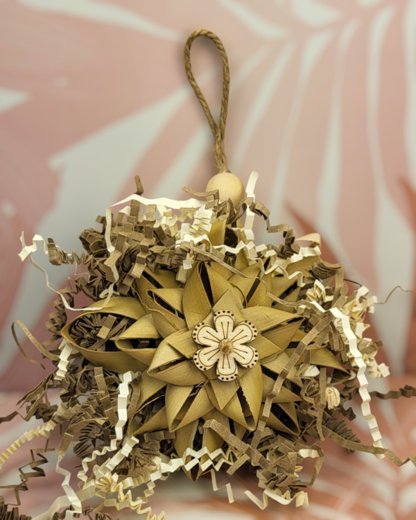 Mojácar combina elementos muy atractivos para loros que disfrutan destruyendo, tirando, deshilachando y buscando pequeños estímulos entre distintas texturas. Formado por dos flores de palma de 12 cm con abundante cantidad de papel corrugado, acompañadas por dos flores de madera de haya y ensambladas con cuerda de yute.