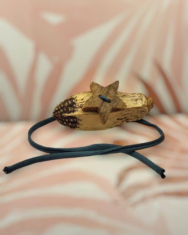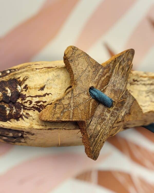 El juguete Laga es natural y resistente, aporta un punto de aventura al mural de tu loro. Fabricado con un fruto de caoba (10-12 x 5 cm) y decorado con una estrella de coco en el centro, este accesorio es ideal para disfrutar del juego destructivo.