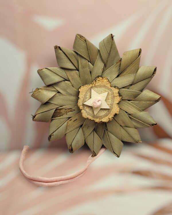 La flor Mitjana es un detalle que combina naturaleza, textura y diversión para el mural de tu loro. Compuesta por una flor de palma (10×10 cm), una rodaja pequeña de alcornoque y una estrellita de madera de haya, este juguete ofrece múltiples zonas para picotear, explorar y destruir.