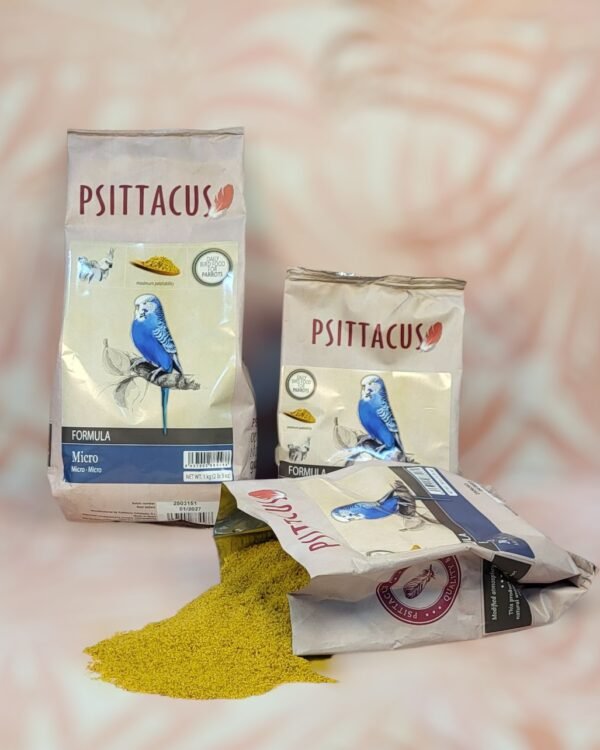 El pienso Psittacus Micro está diseñado para periquitos, ninfas y otras especies pequeñas que en la naturaleza se alimentan principalmente de semillas de gramíneas (Melopsittacus, Nymphicus, Psephotus, Neophema).