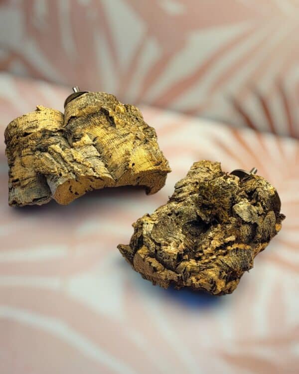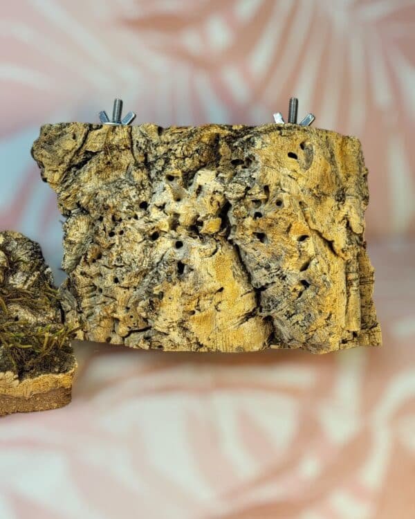 Material: Corcho natural con posibles toques de musgo. Sistema de anclaje: Acero inoxidable.