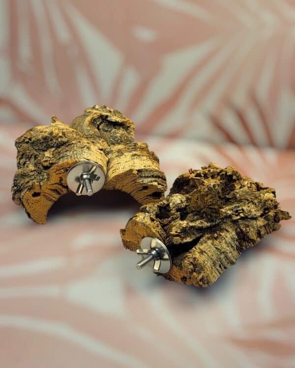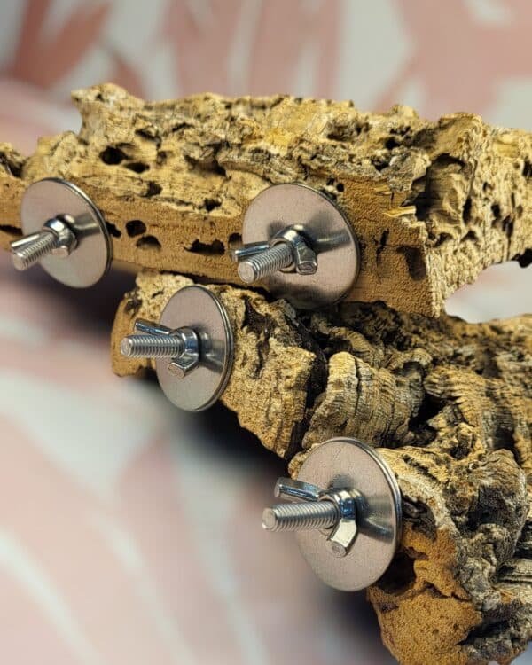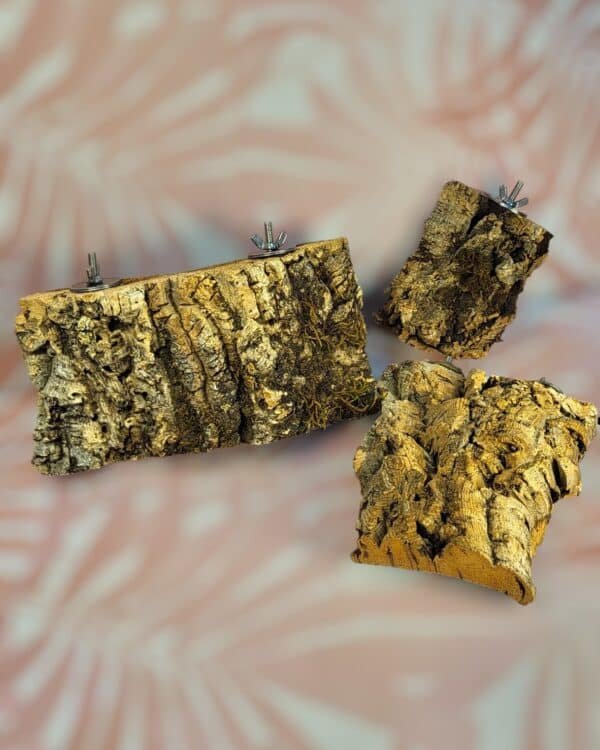 Los posaderos de corcho natural de VitaAnimalis son mucho más que una simple percha. Son zonas de descanso, exploración y diversión que cuidan la salud de las patas de tus loros.