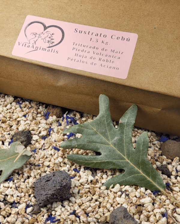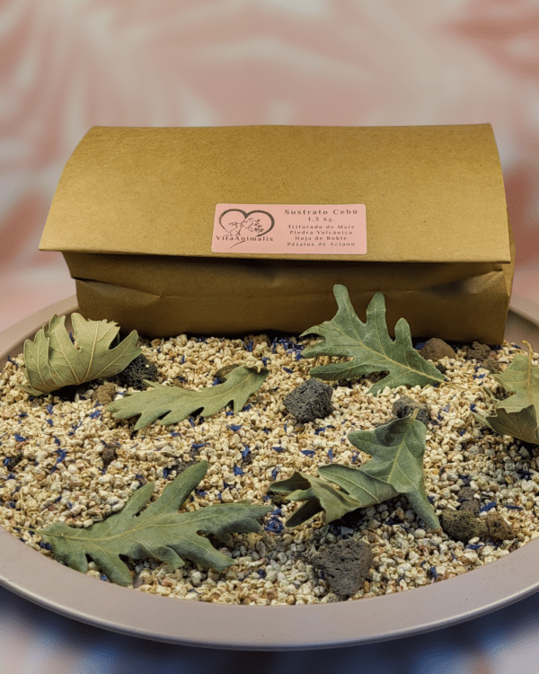 El Sustrato Natural Cebú viene en presentación de 1,3 kg, ideal para cubrir el fondo de jaulas o espacios de enriquecimiento durante un largo período.